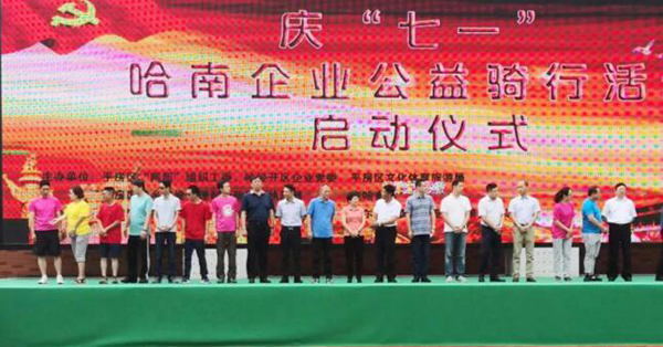 為紀(jì)念建黨97周年,由平房區(qū)兩新工委、哈經(jīng)開(kāi)區(qū)企業(yè)黨委、區(qū)文化體育旅游局主辦的“慶七一”哈南企業(yè)公益騎行活動(dòng)于2018年6月30日在哈南健身廣場(chǎng)隆重舉行。平房區(qū)委書(shū)記、哈經(jīng)開(kāi)區(qū)黨工委書(shū)記劉興閣為巡游隊(duì)伍發(fā)令、領(lǐng)騎。區(qū)委副書(shū)記李兵代表區(qū)委、區(qū)政府為活動(dòng)致辭。公司黨委副書(shū)記、工會(huì)主席董志宏出席啟動(dòng)儀式。