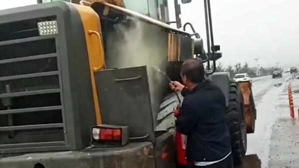 黑龍江珍寶島藥業(yè)股份有限公司雞西分公司安保隊員及時撲救工程車輛火災(zāi)